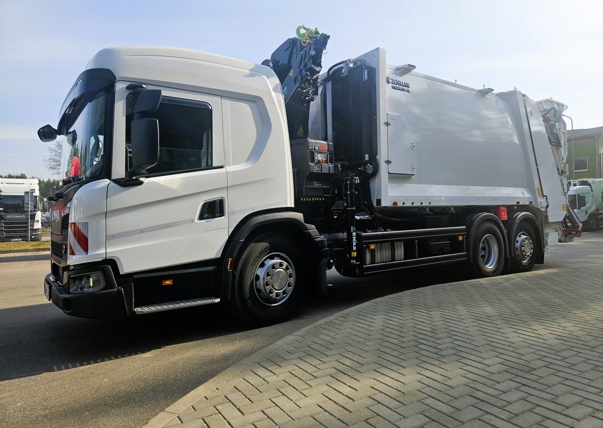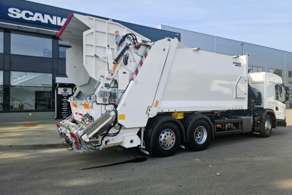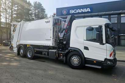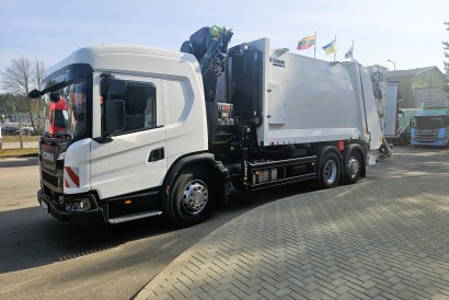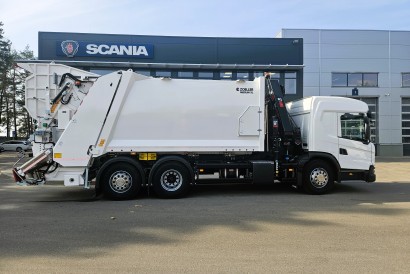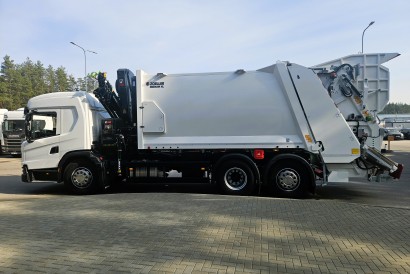 Buitinių atliekų rinkimui Vilniaus mieste skirtas specialus itin gausios komplektacijos žemagrindis Scania L320 6x2*4 šiukšliavežis su ZOELLER antstatu, BOTEK svėrimo įranga ir požeminių konteinerių aptranavimui skirtu manipuliatoriumi HIAB iX HiDuo 158 B-3.