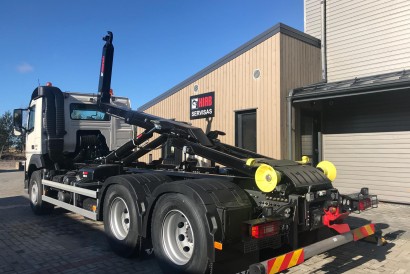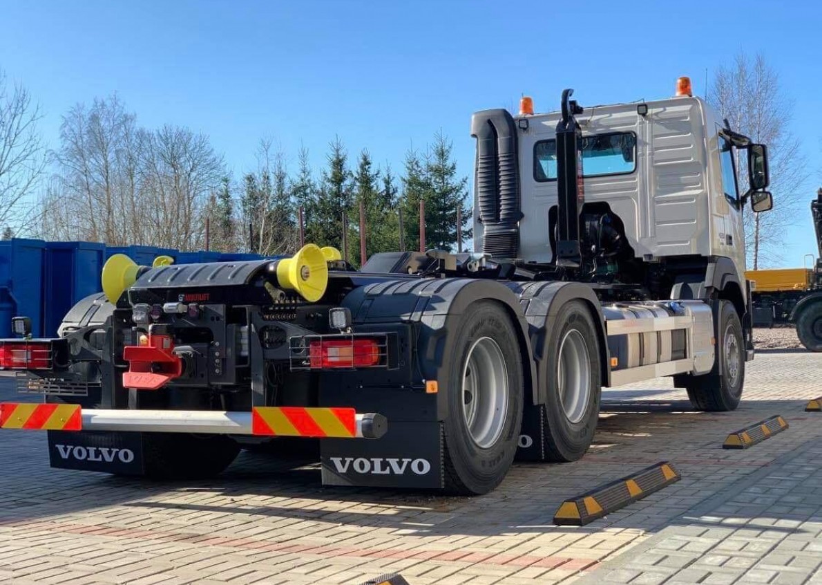 VOLVO FM 6x4 pakeliama galine ašimimi konteinervežis. Naujausias MULTILIFT ULTIMA 18S kablinis keltuvas: trijų galinių vaizdo kamerų sistema maksimaliam saugumui ir komfortui, integruota svėrimo sistema, inovatyvus valdymas, visi reikiami keltuvo ir automobilio parametrai kaip masė, variklio sūkiai, naudojami resursai atskirame ekrane automobilio kabinoje. Didžiuojamės tokiu produktu ir labai džiaugiamės galėdami perduoti jį klientui.