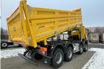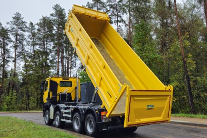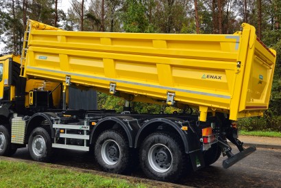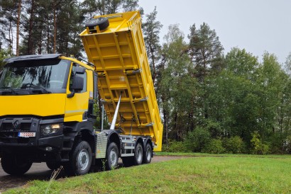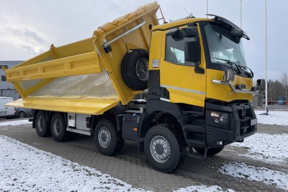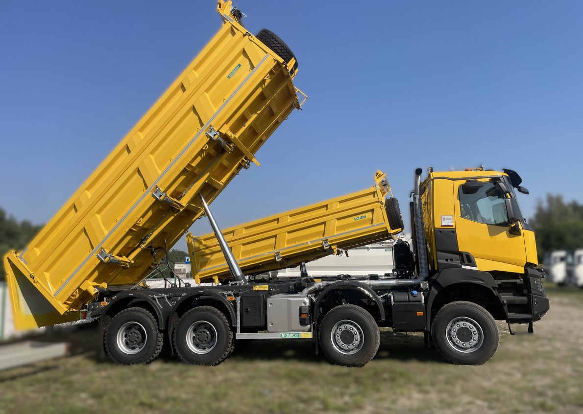 Lietuvos oro uostams perdavėme itin galingus tripusio vertimo savivarčius kėbulus Skibicki su hidraulika valdomais bortais abejose pusėse ir atidaromais anborčiais, sumontuotus ant RENAULT P8X8 HEAVY 13L E6.