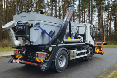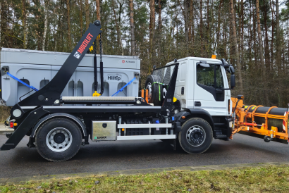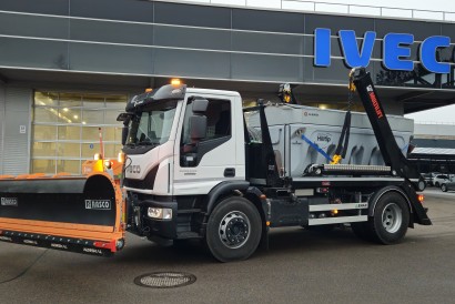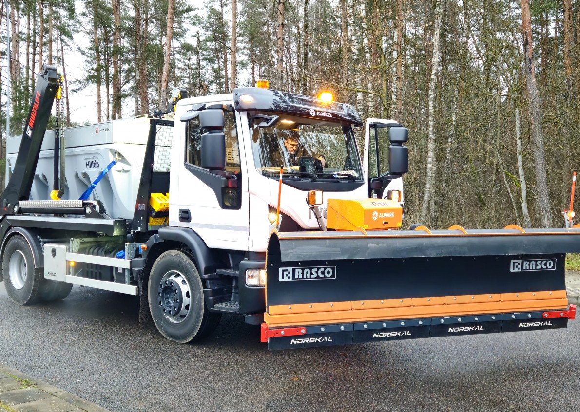 Panevežio mieste pačiu laiku darbą pradėjo statybinio laužo pervežimui ir kelių priežiūrai skirtas universalus IVECO ML180E32 automobilis su grandininiu konteinerių keltuvu MULTILIFT FUTURA12 ir priekiniu sniego verstuvu RASCO bei durskos barstytuvu HilTip.