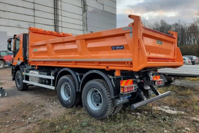 Mūsų šalies kelių priežiūrai perduoti universalūs vasaros ir žiemos darbams skirti Iveco Trakker automobiliai su tripusio vertimo SKIBICKI kėbulais ir Rasco įranga.